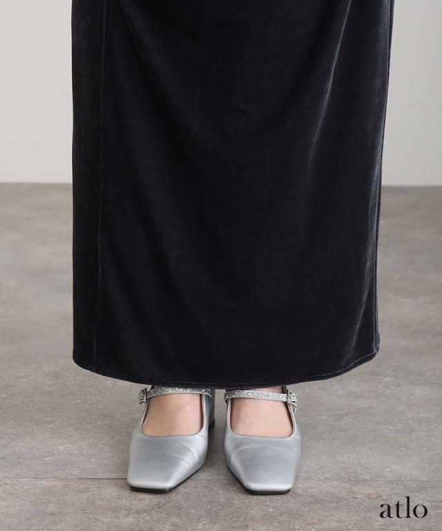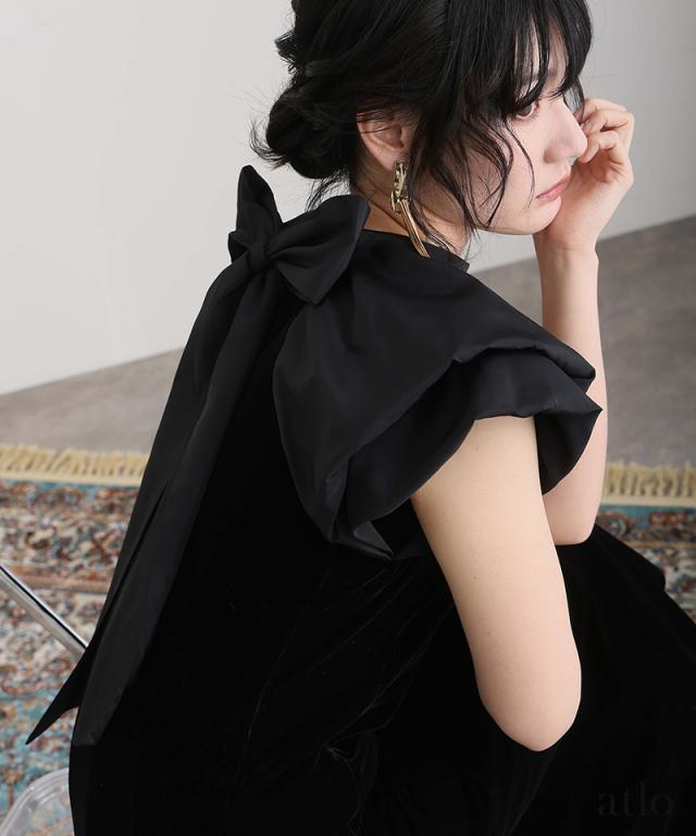 しっとりとしたベロア生地が描くドレープが、動くたびに美しく揺れます。