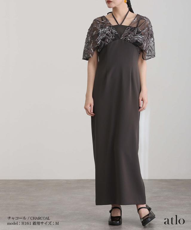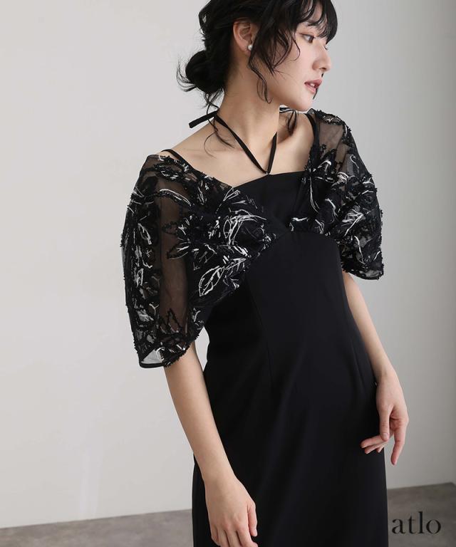 フェザーフラワーレイヤードドレス【296242178】10代・20代・30代・40代・50代・ドレスワンピ・フォーマルワンピ・パンツドレス・服装・ワンピース・ドレスカジュアル・ブランド・七分袖・長袖・ロング・膝丈・薄手・厚手・無地・刺繍・脚長効果・伸縮性・キレイめ・着やせ・体型カバー・スタイルアップ・レース・リボン・ドレープ・小さいサイズ・3Lや4L・かっこいい・かわいい・即日発送・送料無料・結婚式・婚活・披露宴・顔合わせ・発表会・演奏会・二次会・同窓会・お呼ばれ・食事会・謝恩会・親族・七五三・お宮参り・冠婚葬祭・弔事・女子会・韓国・デート・入学式・卒業式・入園式・卒園式・ママ・ピアノ・マタニティー・セレモニー・セレブ・パーティー