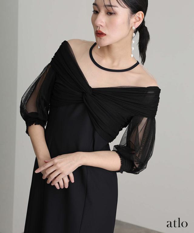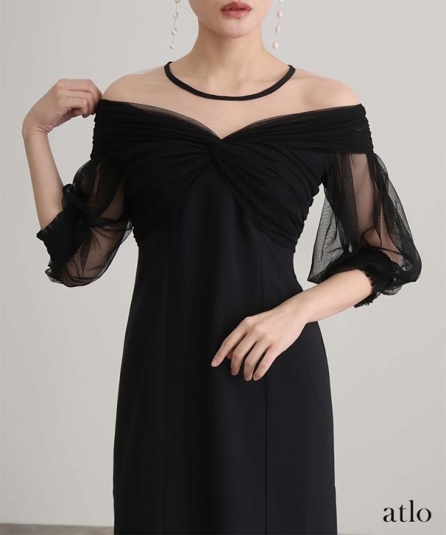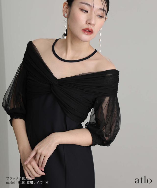 チュールカシュクールオフショルダードレス【401251511】10代・20代・30代・40代・50代・ドレスワンピ・フォーマルワンピ・パンツドレス・服装・ワンピース・ドレスカジュアル・ブランド・七分袖・長袖・ロング・膝丈・薄手・厚手・無地・刺繍・脚長効果・伸縮性・キレイめ・着やせ・体型カバー・スタイルアップ・レース・リボン・ドレープ・小さいサイズ・3Lや4L・かっこいい・かわいい・即日発送・送料無料・結婚式・婚活・披露宴・顔合わせ・発表会・演奏会・二次会・同窓会・お呼ばれ・食事会・謝恩会・親族・七五三・お宮参り・冠婚葬祭・弔事・女子会・韓国・デート・入学式・卒業式・入園式・卒園式・ママ・ピアノ・マタニティー・セレモニー・セレブ・パーティー