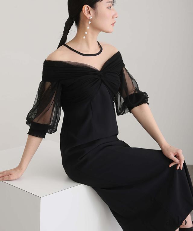 チュールカシュクールオフショルダードレス/401251511