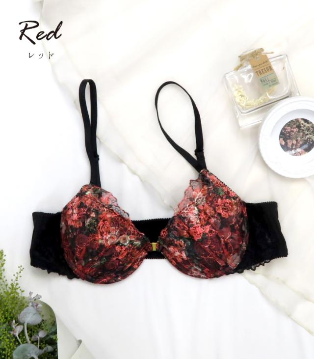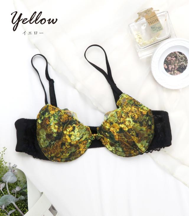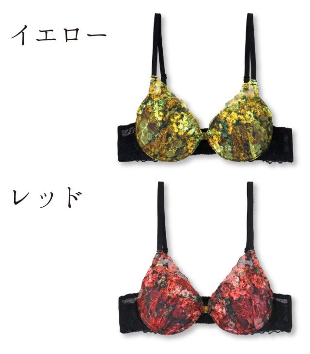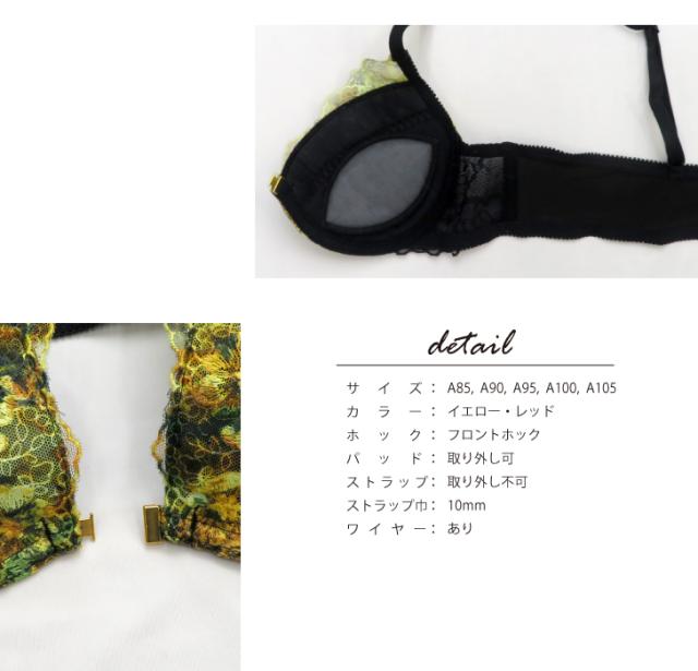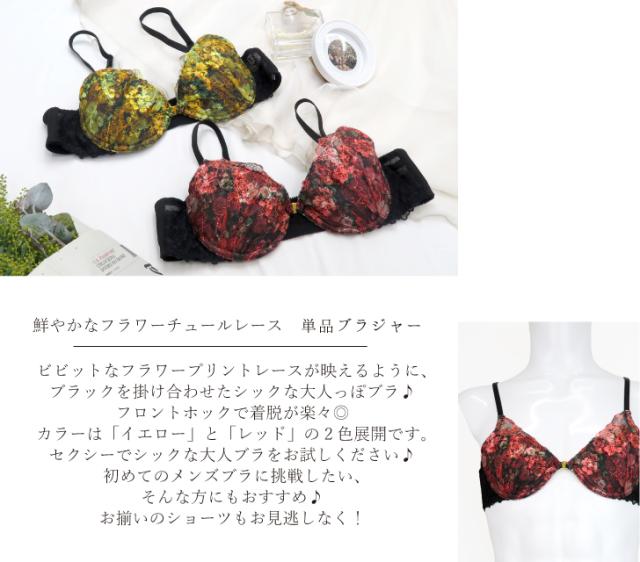ビビットなフラワープリントレースが映えるように、ブラックを掛け合わせたシックな大人っぽブラ♪フロントホックで着脱が楽々◎カラーは「イエロー」と「レッド」の2色展開です。セクシーでシックな大人ブラをお試しください♪、初めてのメンズブラに挑戦したい、そんな方にもおすすめ♪お揃いのショーツもお見逃しなく!