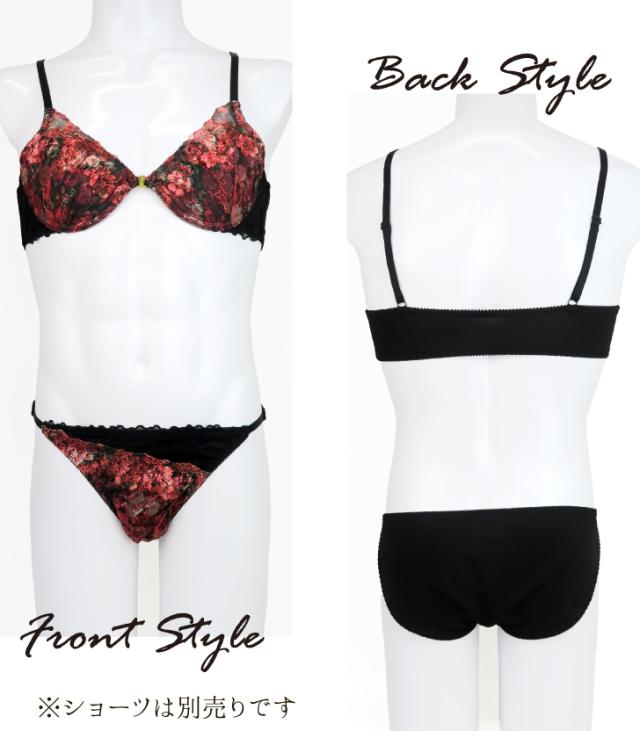 商品名(商品番号):フラワープリント セクシー シック フロントホック メンズランジェリー A85-A105 メンズ体型用 パッド入り 単品 ブラジャー (jm-2142-b)