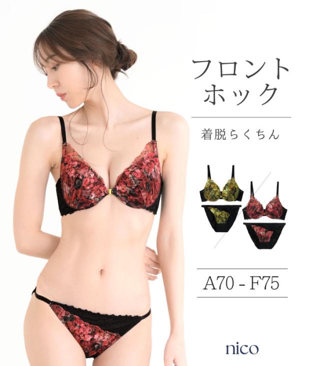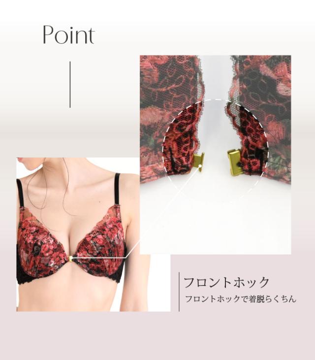 フラワープリント セクシー シック フロントホック A70?F75 ブラジャー&ショーツセット(J-2142)[メール便不可]【 ブラセット 盛りブラ 下着 ブラジャー ショーツ セット レディース インナー 女性 Eカップ Fカップ プチプラ かわいい 大きいサイズ 上下セット】