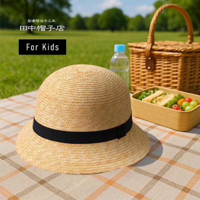 田中帽子店 Gland グラン UK-H010-GLBK(麦わら帽子 キッズ 子供 紐付き ゴム付き 男の子 女の子 かわいい 日よけ 子ども 夏 麦わら 帽子 高級 UV ベビー 2歳 3歳 保育園 日本製 子供用 子供用帽子 日除け帽子) 即納