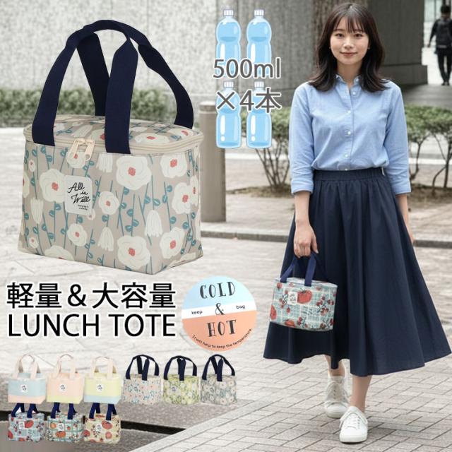 【保冷 保温】ランチバッグ 保冷バッグ おしゃれ 小さめ 大容量 折りたたみ トートバッグ 可愛い クーラーボックス型 スクエア マチあり 自立 ミニ お弁当 水筒 ファスナー付き 花柄 北欧 大人 子ども 高校生 中学生