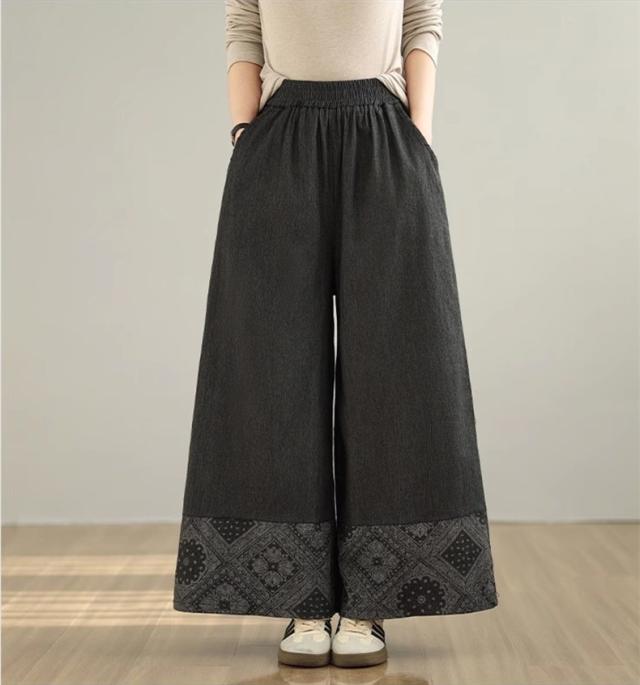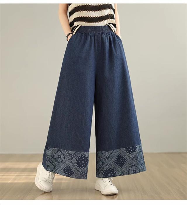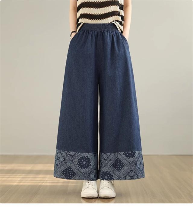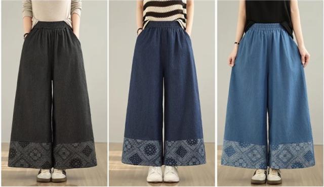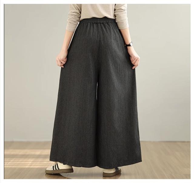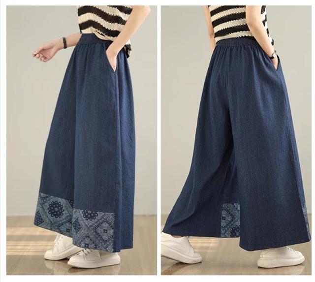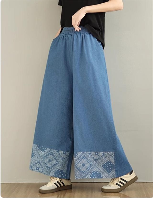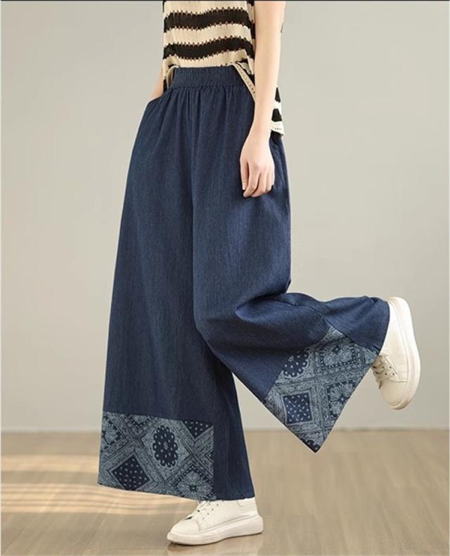 デニムパンツ レディース ボトムス 長ズボン ウエストゴム ゆったりシルエット ワイドパンツ やわらかな風合い 動きやすさもうれしいポイント 可愛い