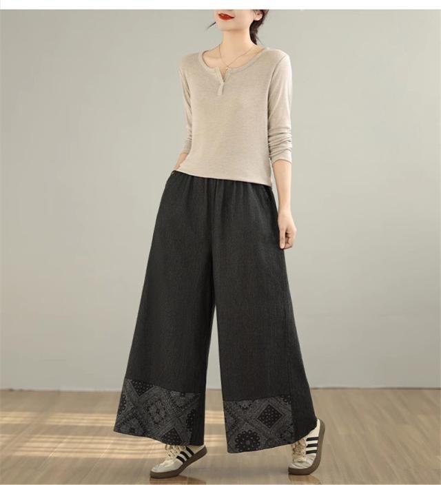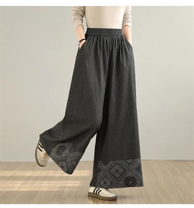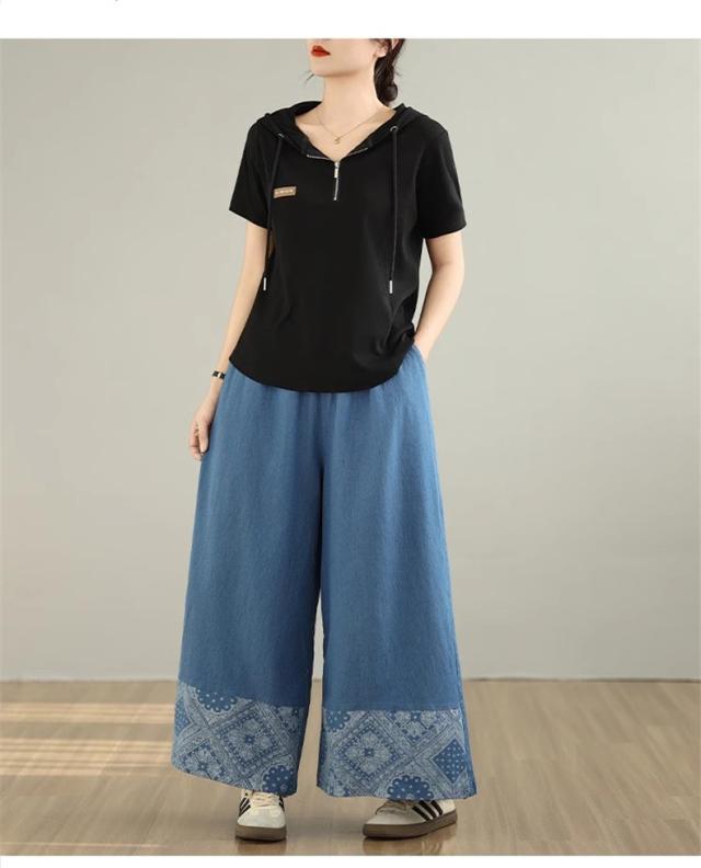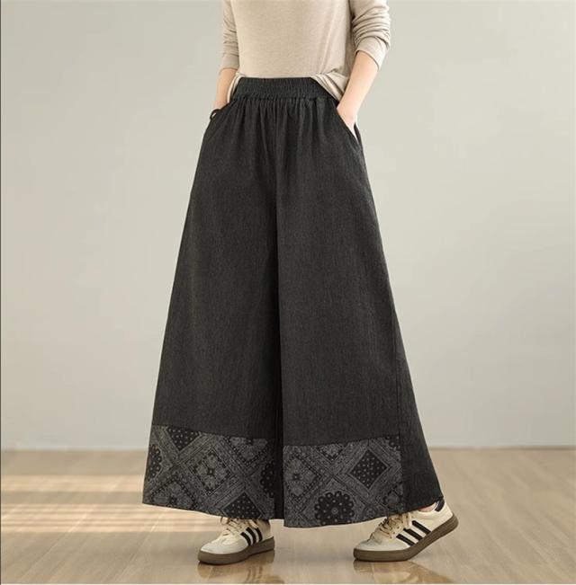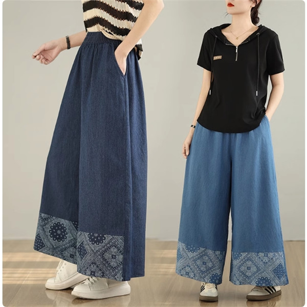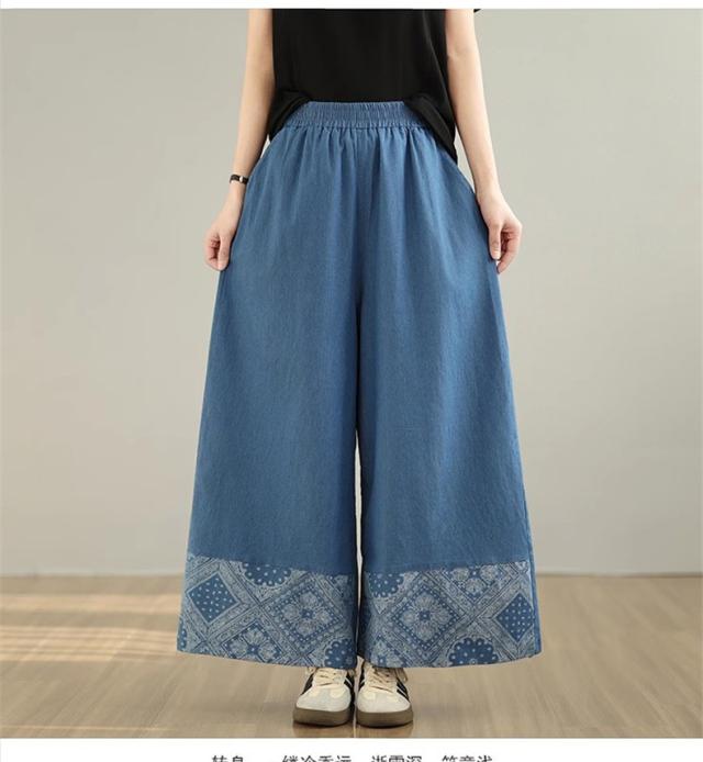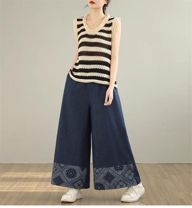 デニムパンツ レディース ボトムス 長ズボン ウエストゴム ゆったりシルエット ワイドパンツ やわらかな風合い 動きやすさもうれしいポイント 可愛い