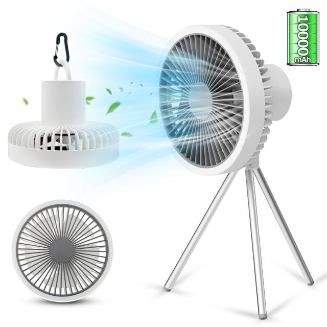 3段階風量調節とリズム風モードを搭載し、微風から強風まで自由に調整できます。特に赤ちゃんや高齢者に適した設計で、睡眠や昼寝にも最適です。フロア、卓上、吊下げの3通りの使用方法があり、伸縮式三脚スタンドで高さ調整が可能、軽量で持ち運びも便利。さらに、LEDライトが搭載されており、アウトドアや夜釣りで活躍します。静音設計で寝室や作業中も快適に使用できます。1〜5時間のタイマー機能と、10000mAhの大容量バッテリーでスマートフォンの充電も可能。室内外問わず、キャンプや旅行にも対応。1年保証付きで安心して使用できます。