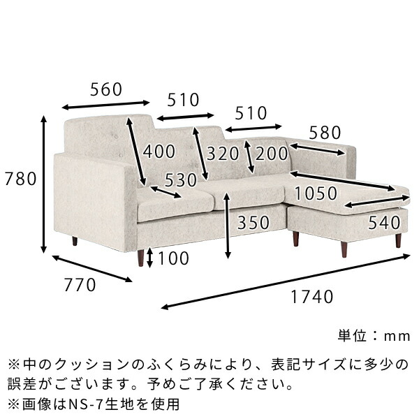 サイズ:約幅1740 奥行770〜1310 高さ780 mm(内 脚の高さ:100 mm)