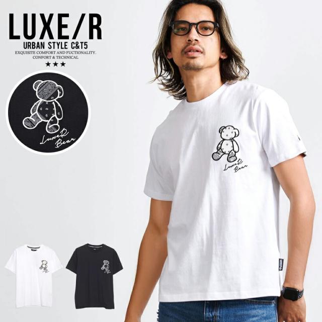 Tシャツ メンズ 半袖 ブランド トップス カットソー ペイズリー柄 ベア くま ワンポイント 綿100% コットン タイト ホワイト ブラック 黒 白T 白Tシャツ LUXE R ラグジュ 20代 30代 40代 ユニセックス 男性 男 服 春 夏 夏服 春夏 ファッション [46041]