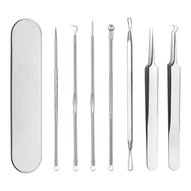 Trust Contact 角栓 ピンセット 7本セット ニキビ取り 毛穴ケア 毛抜き 面皰圧出器 抗菌 ステンレス ケース付 除去