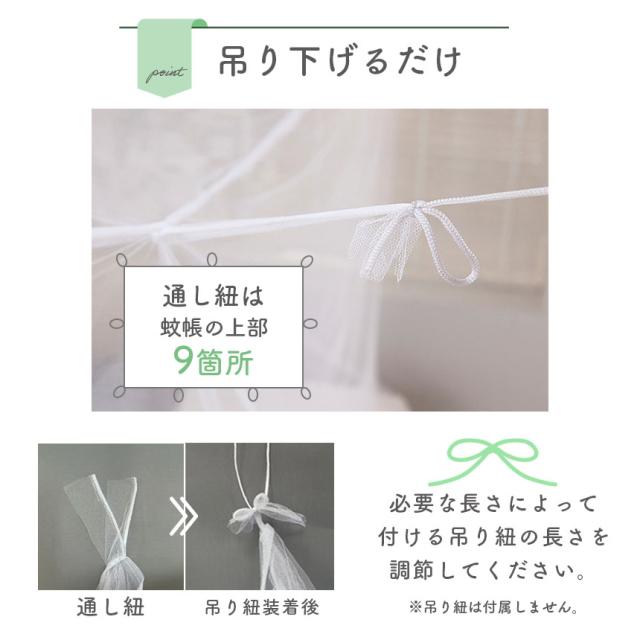 1.蚊帳の通し紐に吊り紐を必要な個所結びます。