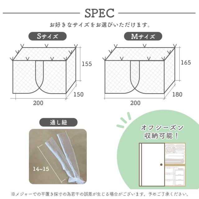 蚊帳でどこでも快眠、虫知らず。就寝時、虫が気になって眠れない…そんなことはありませんか?そんな時に蚊帳があれば屋内でも屋外でも虫を気にすることなく、過ごすことができます!【害虫をシャットアウト】網目が細かく、蚊などの小さな虫の侵入を防ぎ、寝ている間も安心。赤ちゃんのいるご家庭で、殺虫剤を使いたくない方や蚊取り線香の煙や、匂いが苦手な方にもおすすめです。