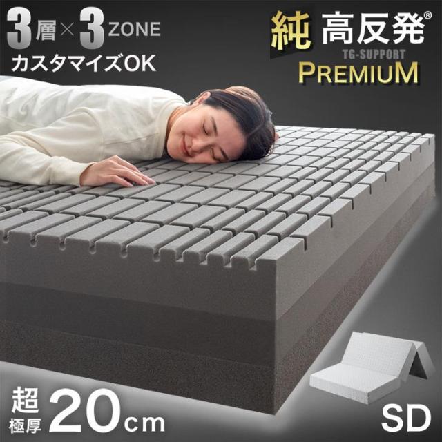 [即納] 【3層×3ゾーン】寝心地フルカスタム 極厚 20cm プレミアム 純高反発マットレス セミダブル 3つ折り 3層構造 高反発マットレス メッシュ ニット 洗えるカバー SD 折りたたみ 敷布団 敷き布団 寝具 高反発 ベッドマット