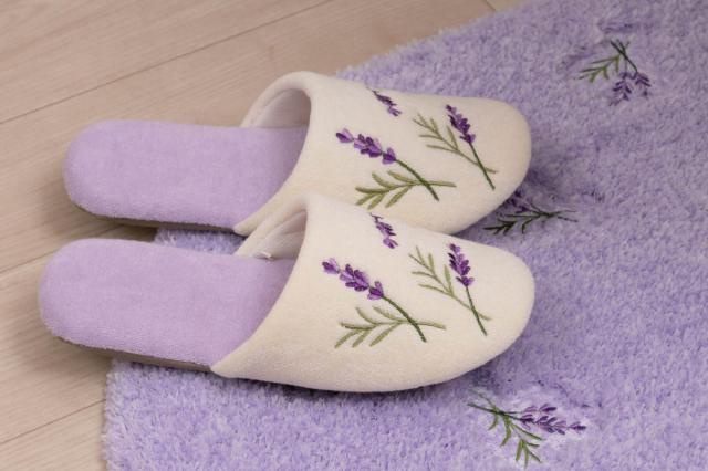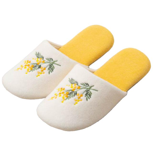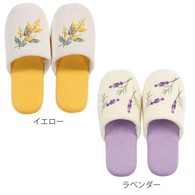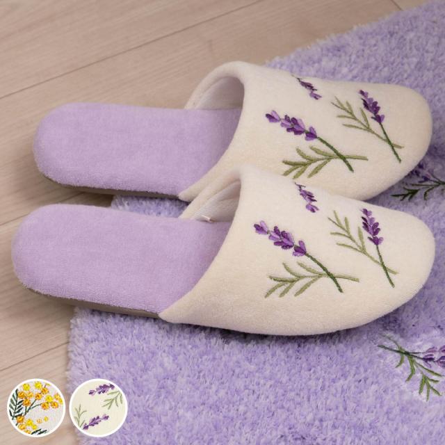 花柄の刺繍が可愛らしいトイレスリッパです。素朴で優しい雰囲気なミモザ柄と、安らぎを感じるラベンダー柄がございます。お手洗いに癒しと清潔感をもたらします。