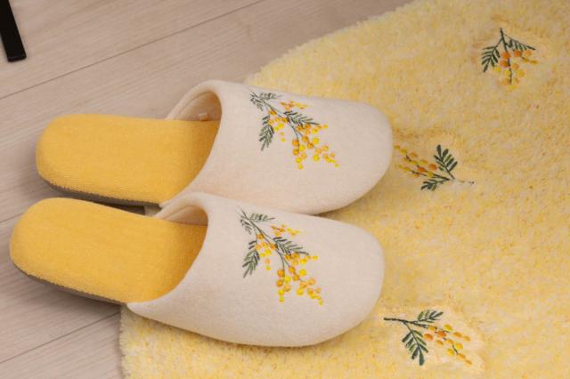 シリーズ「yorisou」の「スイートミモザ」、「スイートラベンダー」トイレタリーは、2種類の糸をミックスしたボリュームあるベースに、花刺繍を散りばめたデザインが特徴的です。フタカバー、トイレマット、ペーパーホルダーカバー、スリッパ、バスマットで揃えられ、統一感のある空間が作れます。