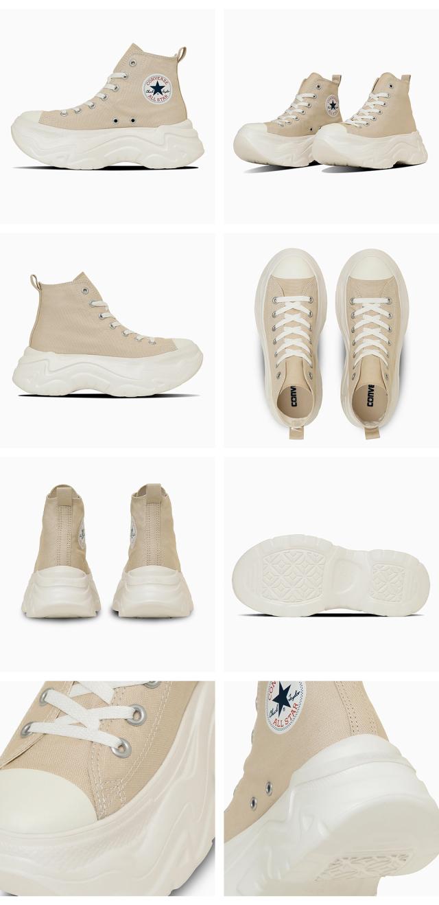 オールスターらしさを残しながらも、厚底ソール部分の大胆な意匠が特徴的なトレンド感のある一足。