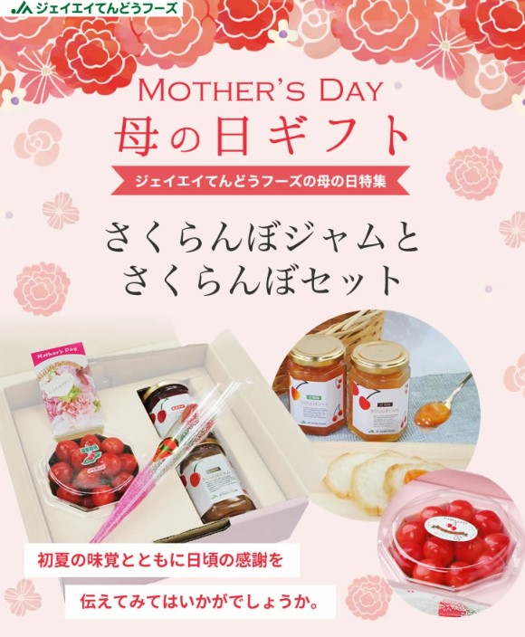 ジェイエイてんどうフーズ 母の日 ギフト さくらんぼ&ジャムセット 佐藤錦 Lサイズ 100g 紅さやかジャム 紅秀峰ジャム プレゼント