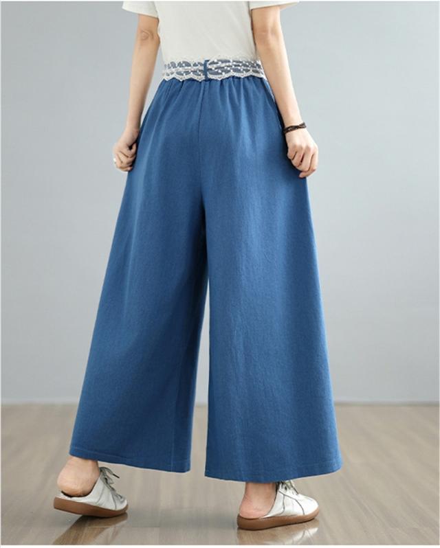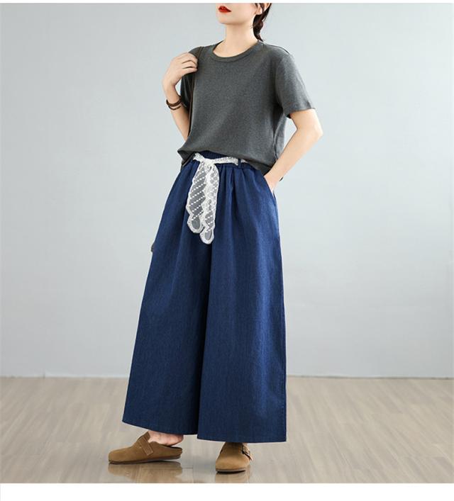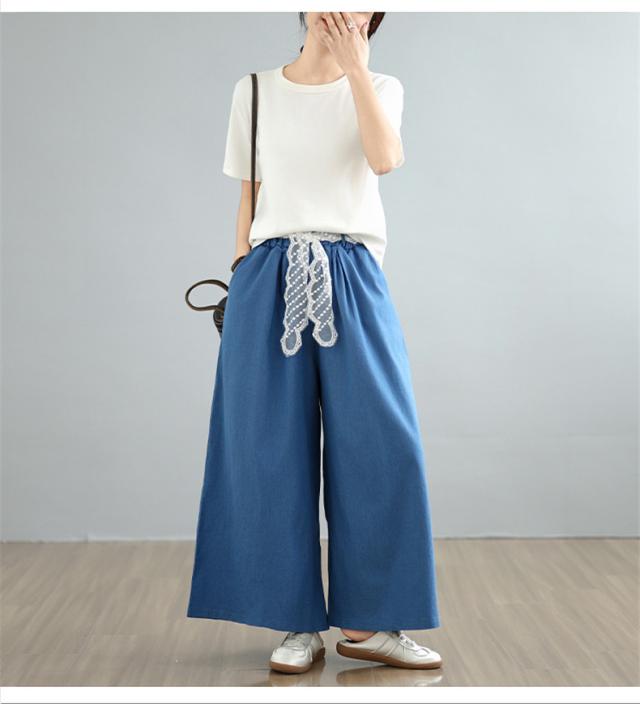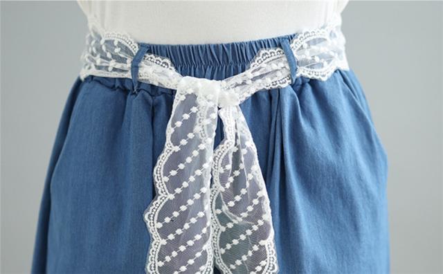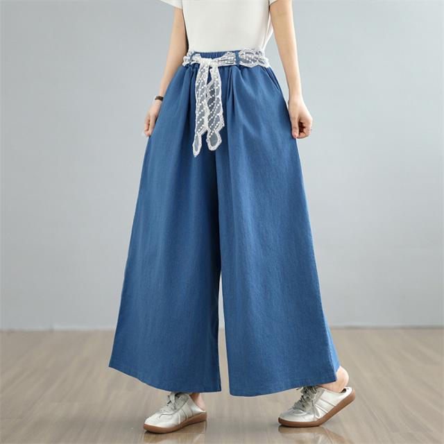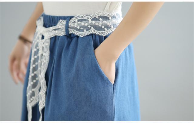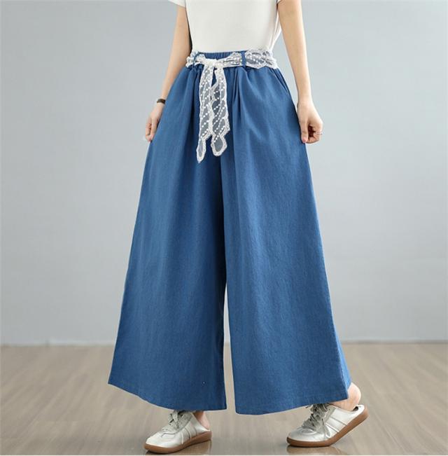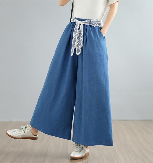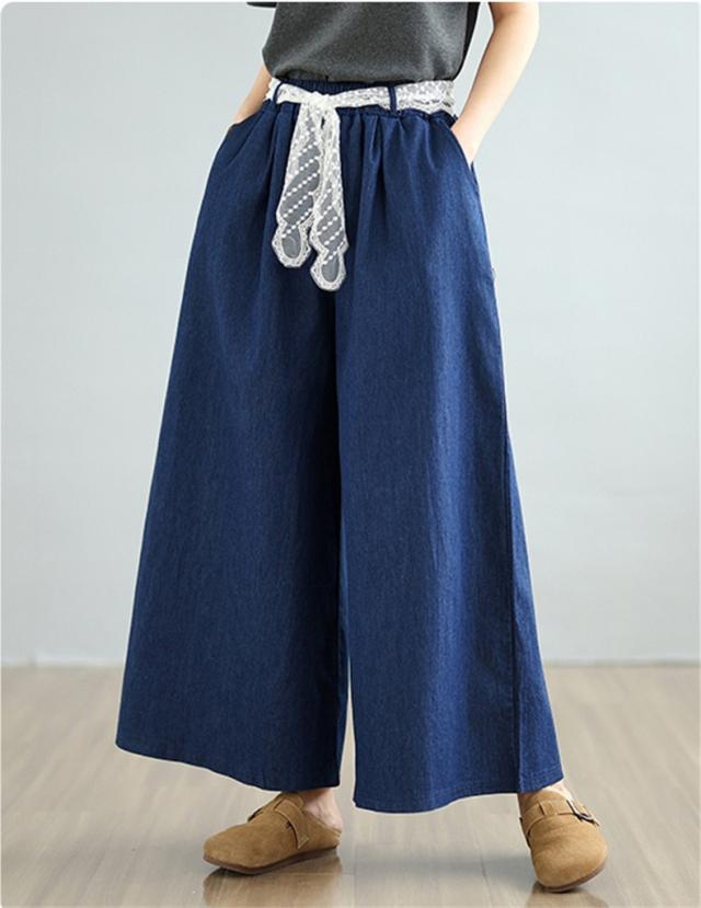 デニムパンツ レディース ワイドパンツ ジーンズ ジーパン 体型カバー 落ち着いた大人コーデに レースベルト付き 楽チン おすすめ トレンド感UP ゆったり