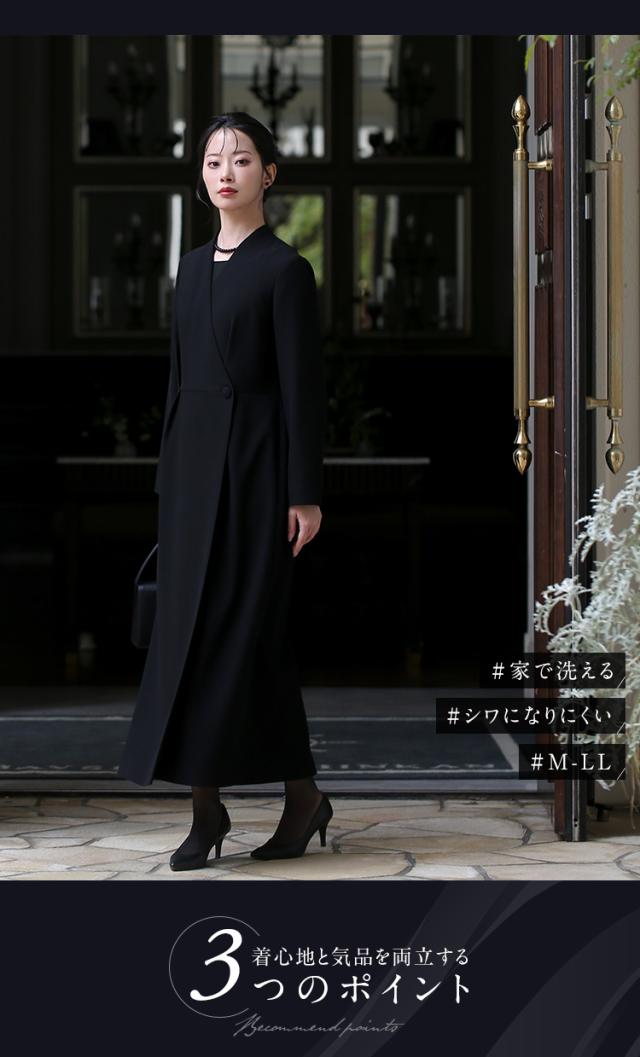 【28%OFF】 喪服 ブラックフォーマル レディース ワンピース 礼服 ロング丈 洗える 大きいサイズ 前開き 黒 スーツ フォーマル オールシーズン ブラック 結婚式 七五三 法事 入園式 入学式 卒園式 卒業式 服装 母親 30代 40代 50代 60代 M L LL NGR-5013 送料無料