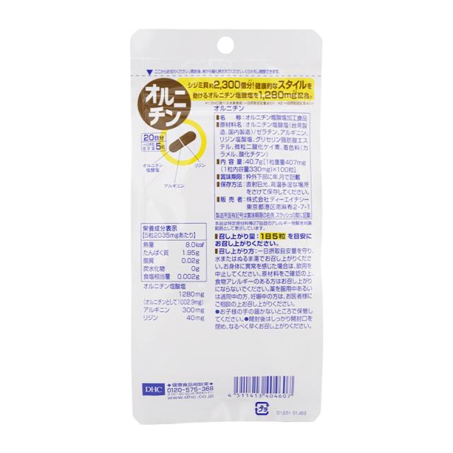 [5個セット]DHC ディーエイチシー オルニチン 20日分 100粒 栄養補助食品 サプリメント 健康食品 トリプルアミノ酸パワー[ギフトラッピング対応]