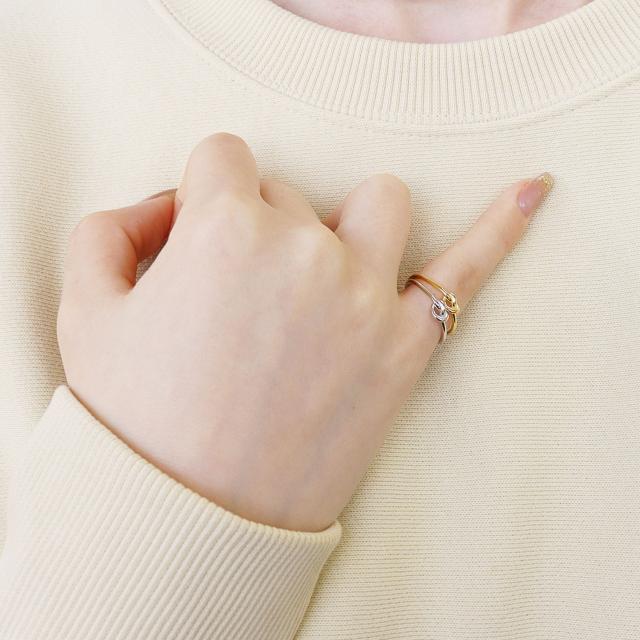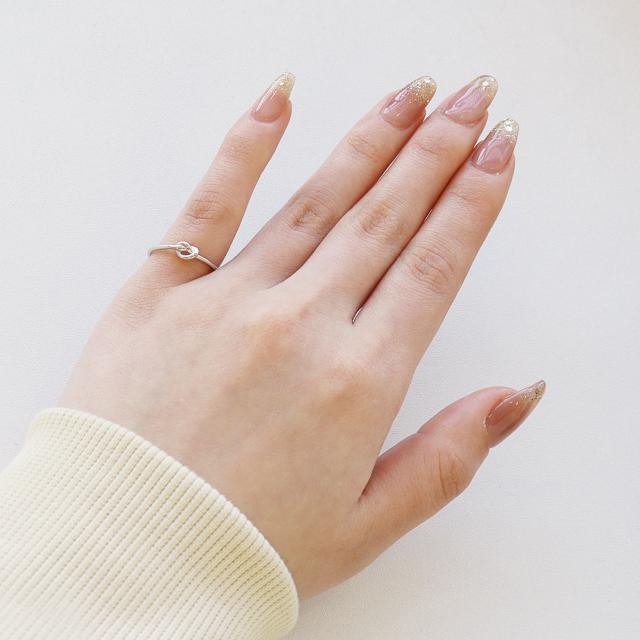 細身の結び目デザインがかわいいシンプルなリングは、 なめらかな曲線を描く地金が輝く、 細身ながらも華やかな雰囲気にお仕立ていたしました。