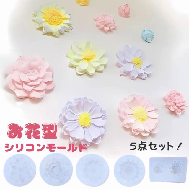 シリコンモールド レジン 花 春 5点セット アロマストーン アロマキャンドル キャンドル 粘土型 レジン型 UVレジン LEDレジン エポキシ樹脂 ハンドメイド クラフト用 型枠