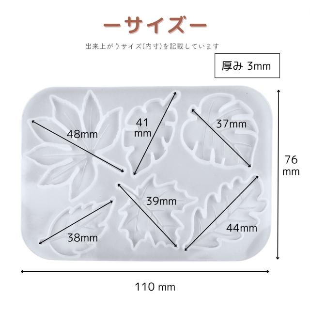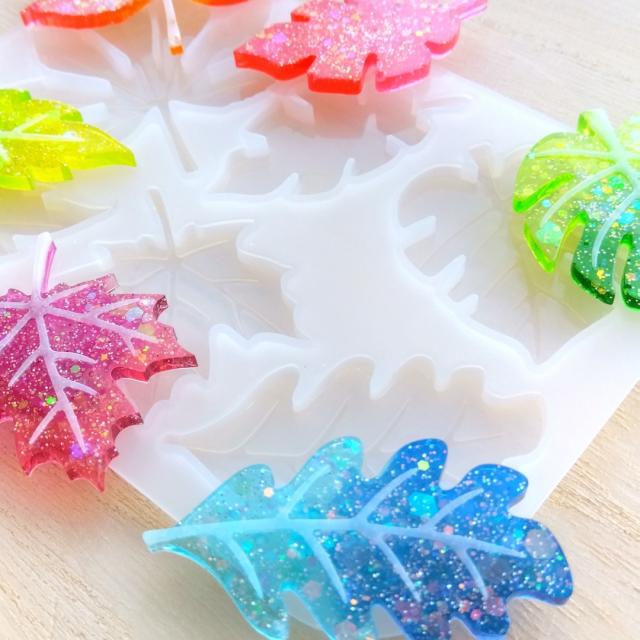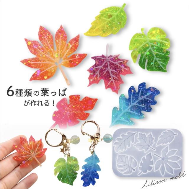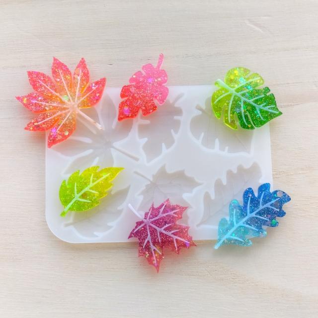 シリコンモールド リーフ 6種類 葉っぱ 紅葉 レジン 装飾 アクセサリー パーツ チャーム キーホルダー レジン型 エポキシ樹脂 ハンドメイド クラフト用 型枠
