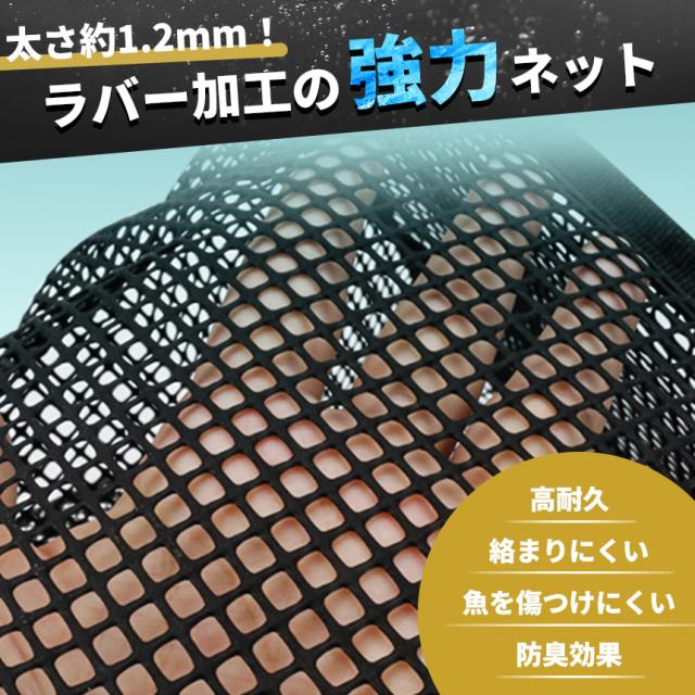ラバー加工ネットなので、魚体にも優しくキープできます。