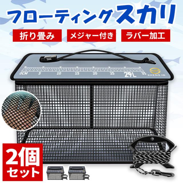 \フローティングスカリ/スカリとは?スカリは釣った魚を活かしてキープしておくことができるアイテム!魚を新鮮な状態で持ち帰ったり、時合に効率よく釣りをするのに大活躍します。スカリの中でも近年注目されているのがフローティングスカリ!四角い形状でラバーネットのタイプが主にフローティングスカリと呼ばれています。上蓋に浮力体が入っており水面に本体を浮かせることが可能。ラバー加工ネットなので、魚体にも優しくキープできます。