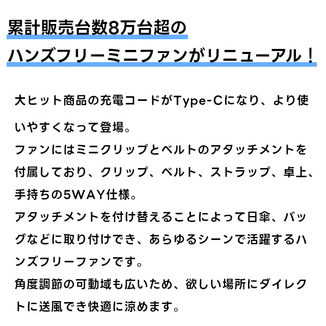 累計販売台数8万台超のハンズフリーミニファンがリニューアル! |