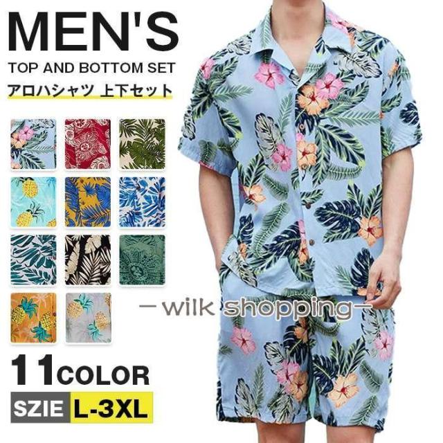 上下セット 半袖 メンズ 総柄 セットアップ 夏 花柄 アロハシャツ 短パンツ 夏服 全11色 旅行 ビーチ 海 柄シャツ 軽い 父の日 プレゼント おしゃれ カジュアル