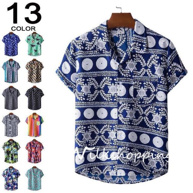 アロハシャツ メンズ 総柄 おしゃれ ボタニカル ストライプ 半袖シャツ カジュアル 開襟シャツ メンズファッション 40代 0代