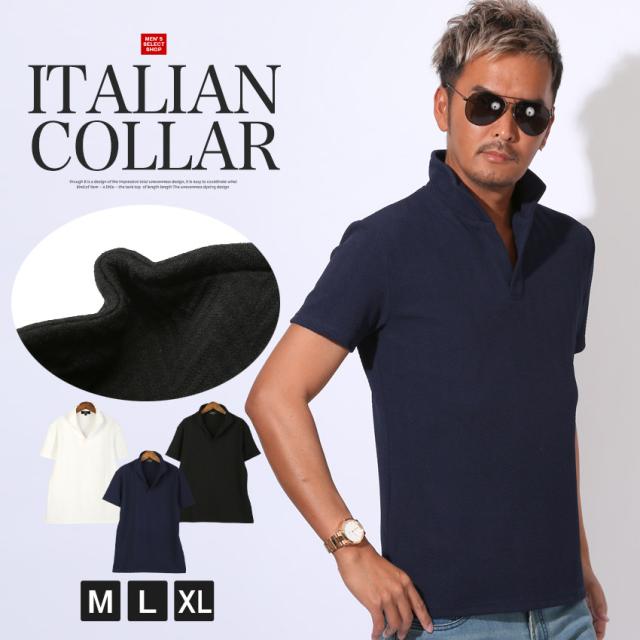 ポロシャツ カットソー 半袖 メンズ イタリアンカラー スタンドカラー【ふくれヘリンボーンイタリアンカラー半袖ポロシャツ】 aa-3520