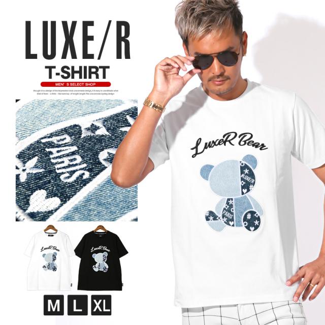 LUXE/R ラグジュ Tシャツ 半袖 トップス カットソー メンズ ブランド 刺繍 ワッペン【LUXE/R(ラグジュ)デニムベア半袖Tシャツ】 aa-3517