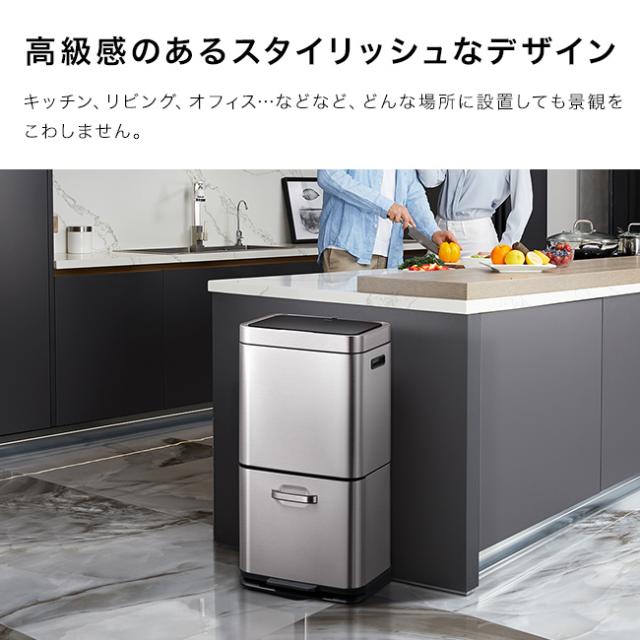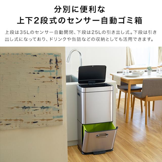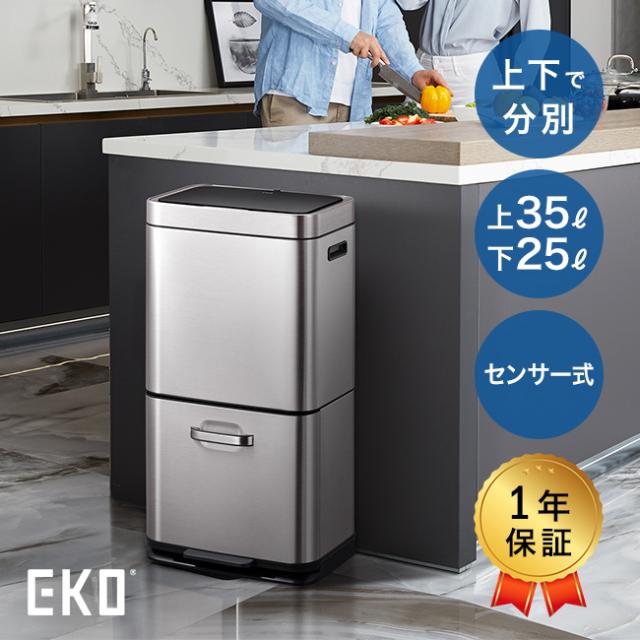 EKO ヒマラヤ センサービン 上部35L+下部25L(ゴミ箱 おしゃれ 自動開閉 分別 上下 2段 センサー ペダル式 ごみ箱 ダストボックス キッチン カウンター 横 リビング ダイニング)【T】 1-2W