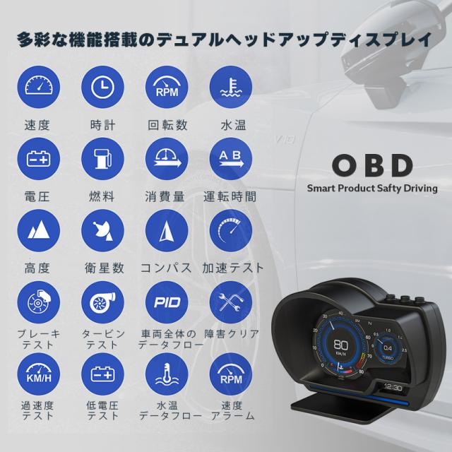 ヘッドアップディスプレイ OBD2 GPS hud 高機能 多機能 タコメーター 故障診断 簡単装着 マルチメーター 車用品 カー用品 角度調節 車載ディスプレイ OBD2故障診断