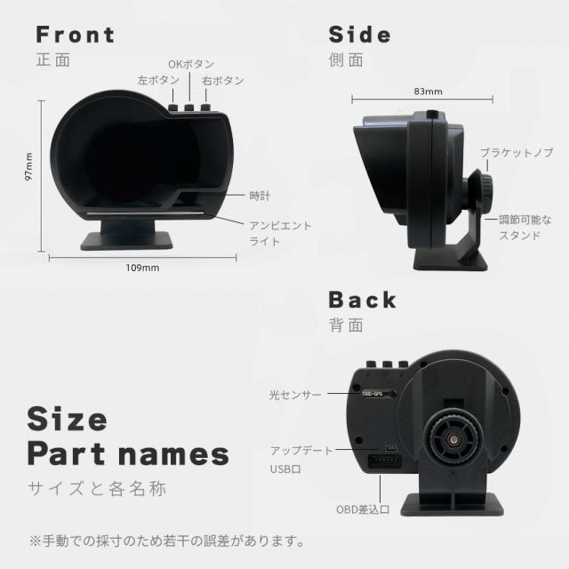 コンパクト、低価格ながらも、きっと満足いただける機能が多数搭載されています。コスパ最強のHUDです。