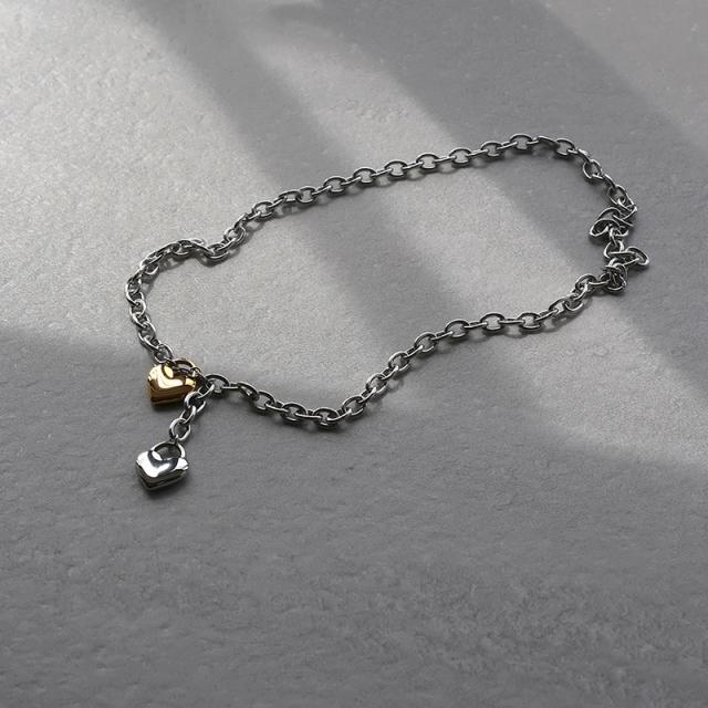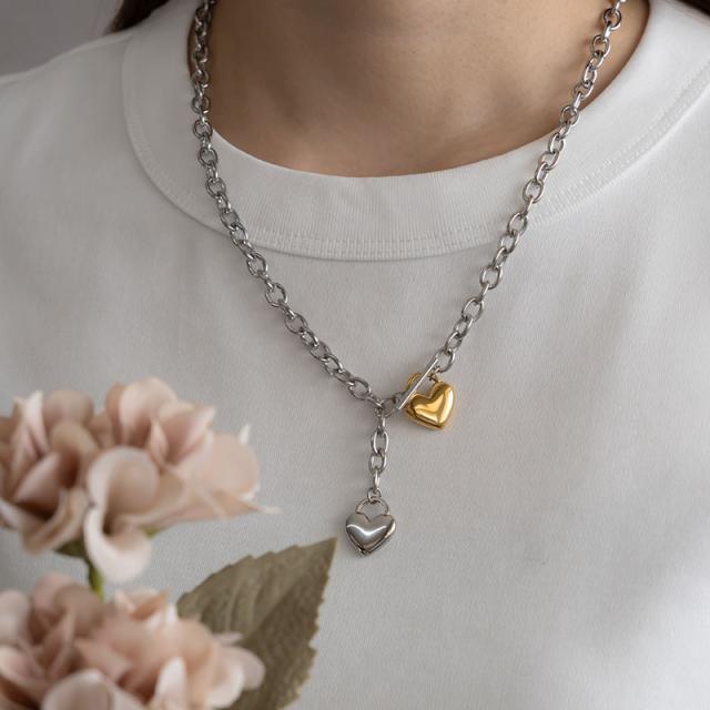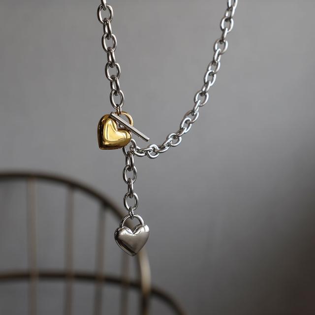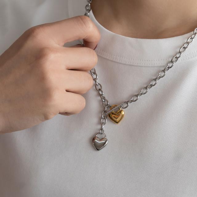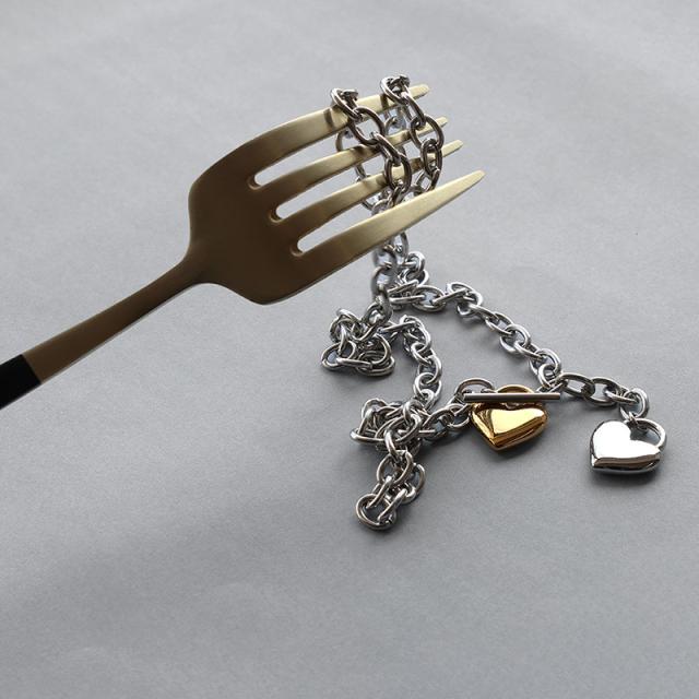 重厚感のある太チェーンにぷっくりとしたハートモチーフを合わせたクールなデザイン。