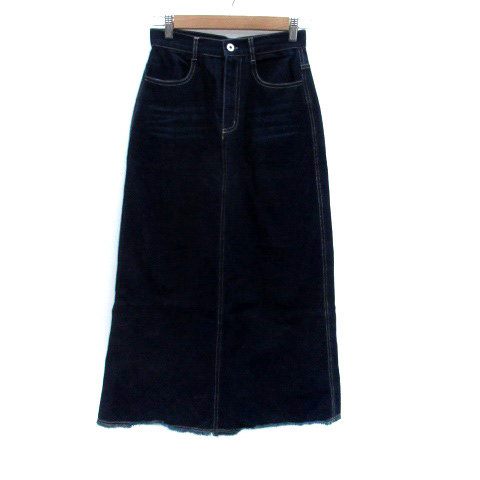 【中古】パブリュクス PUBLUX デニムスカート フレアスカート ロング丈 マキシ丈 カットオフ S 紺 ネイビー
