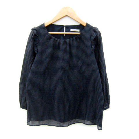 【中古】テチチ Te chichi ブラウス カットソー 長袖 ギンガムチェック柄 シースルー M 紺 ネイビー レディース