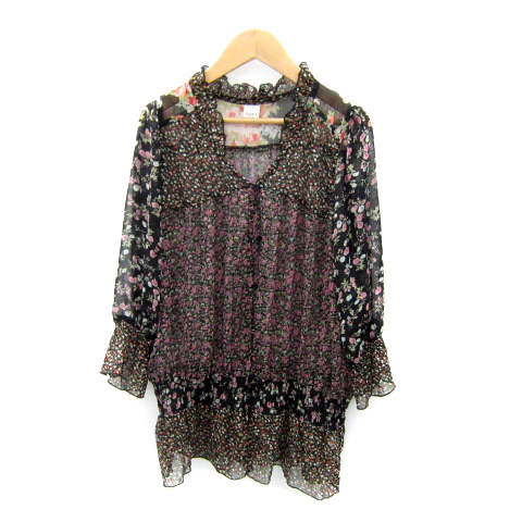 【中古】アクシーズファム ブラウス カットソー 長袖 花柄 シースルー マルチカラー M 黒 ブラック レディース
