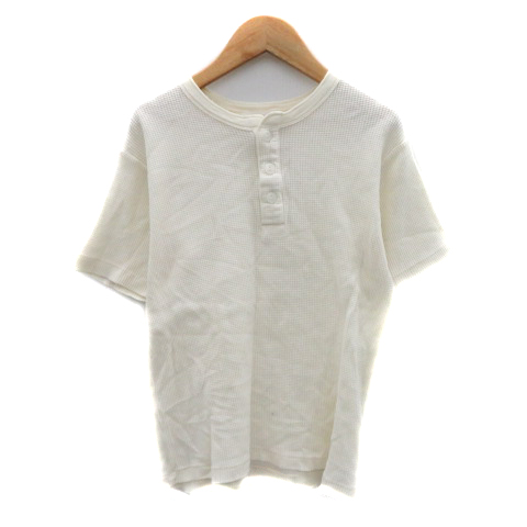 【中古】BEAUTY&YOUTH ビューティー&ユース カットソー 半袖 ヘンリーネック ワッフル生地 S オフホワイト メンズ