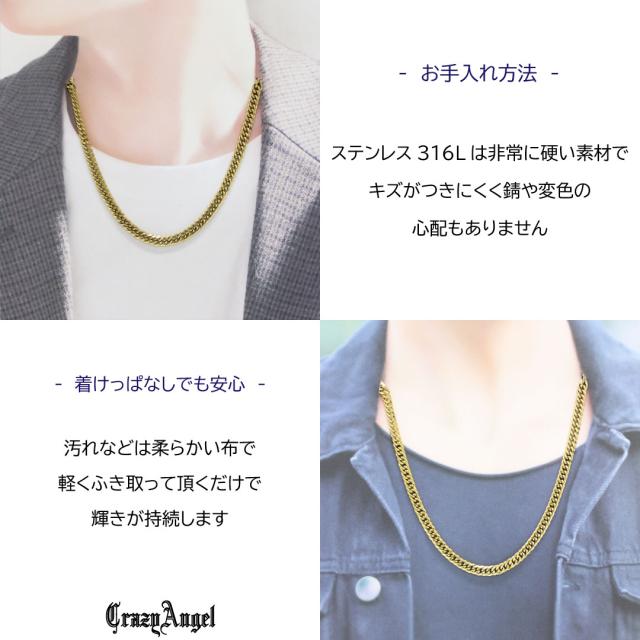 喜平ネックレス 喜平チェーン メンズ ステンレス キヘイネックレス スティール 6面ダブル 6面カット 50cm ゴールド 金属アレルギー 対応 CA-973 p10
