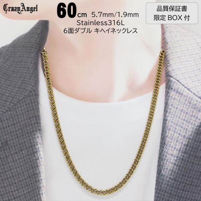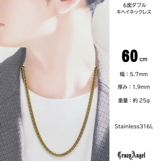 喜平ネックレス 喜平チェーン メンズ ステンレス キヘイネックレス キヘイチェーン スティール 6面ダブル 6面カット 60cm ゴールド 金属アレルギー 対応 CA-964