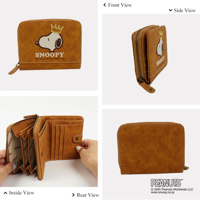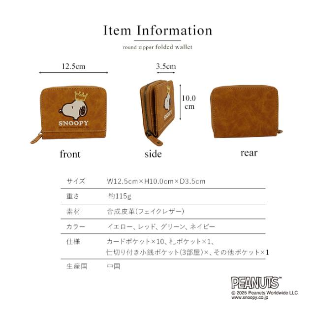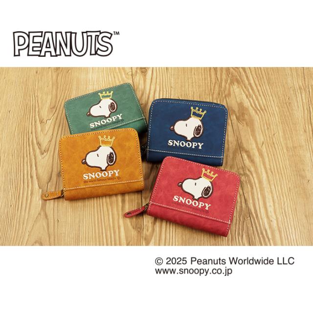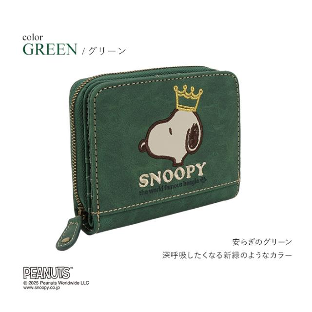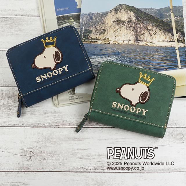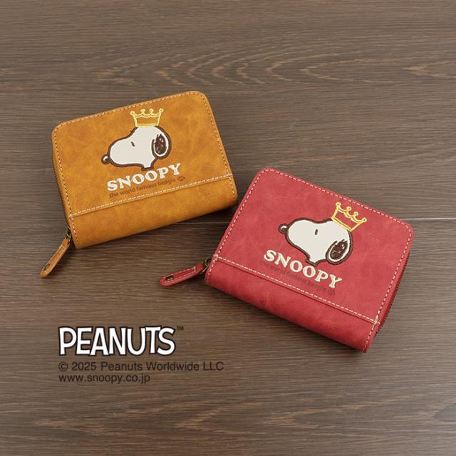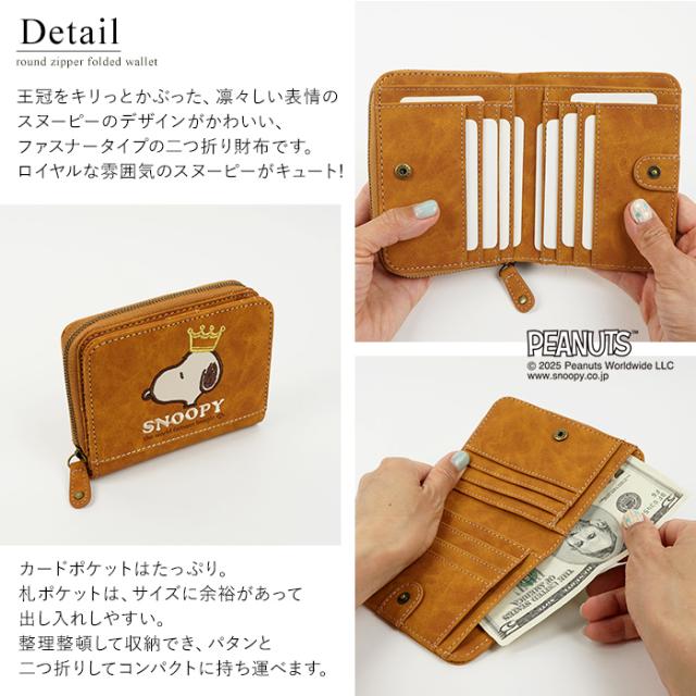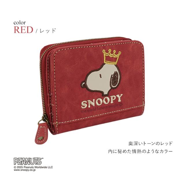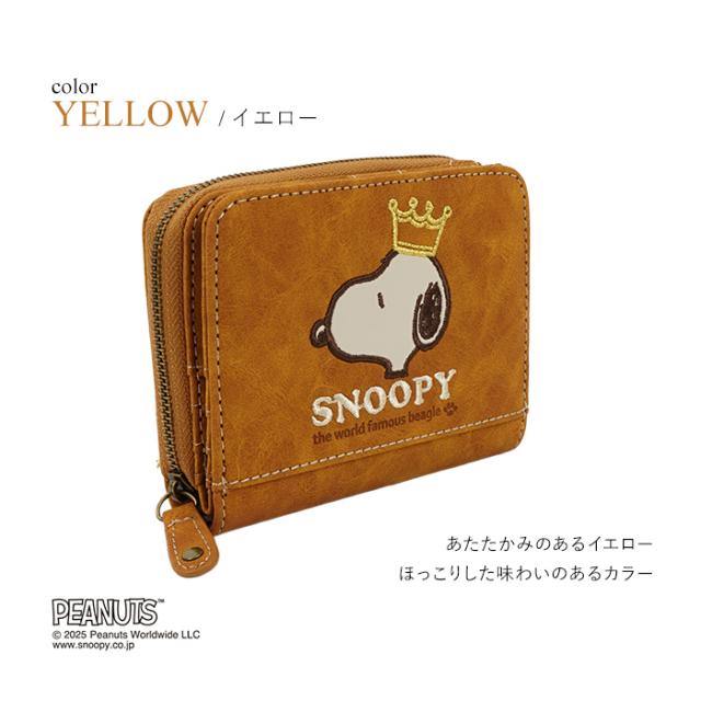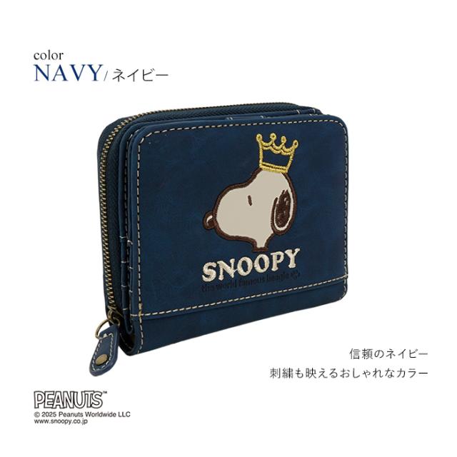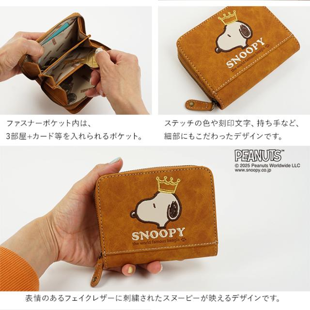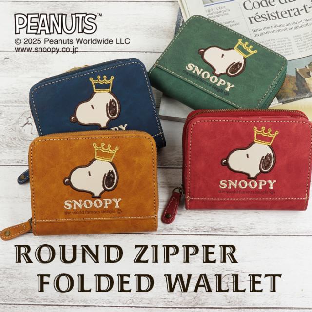 SNOOPY スヌーピー 財布 二つ折り財布 コンパクト ラウンドファスナー ファスナー 刺繍 王冠 肉球 ワッペン ロゴ 大人 シンプル おしゃれ かわいい PEANUTS サイフ ジッパー レディース プレゼント ギフト 誕生日 新生活 お祝い クリスマス ラッピング