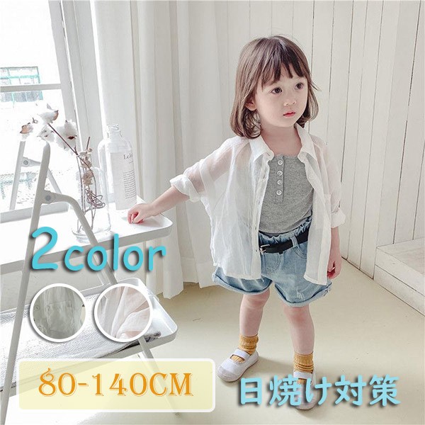 キッズ シアーシャツ 日焼け止め コート 白 夏用 アウトドア ベビー 薄手 男の子 女の子向け 涼感 透け感 日焼け対策 カジュアル アウター ホワイト グリーン 80 90 100 110 120 130 140