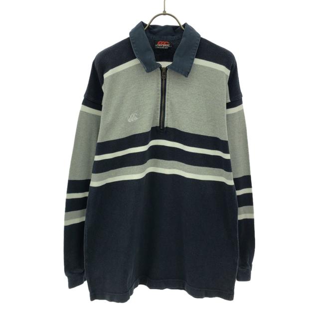 カンタベリーオブニュージーランド ロゴ刺繍 ボーダー 長袖 ハーフジップ ポロシャツ S ネイビー×グレー CANTERBURY OF NEW ZEALAND メンズ