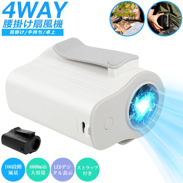 4WAY 腰掛け/首掛け/卓上/手持ち 服の中に送風 腰掛けファン ハンズフリー 4000mAh大容量バッテリー 小型 ミニ扇風機 送風機 父 母の日 プレゼント