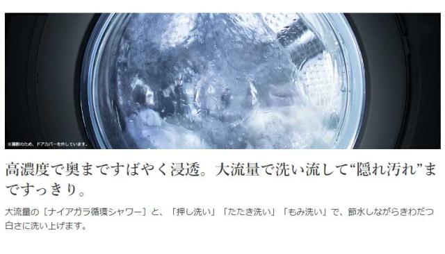大流量の[ナイアガラ循環シャワー]と、「押し洗い」「たたき洗い」「もみ洗い」で、節水しながらきわだつ白さに洗い上げます。